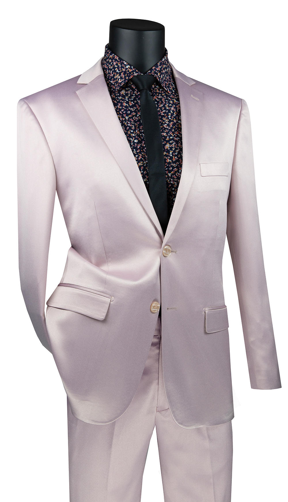 Single breasted 1 buttons, slim fit sport coat with narrow shawl lapel, Side vents, Solid color Stretch Sateen…