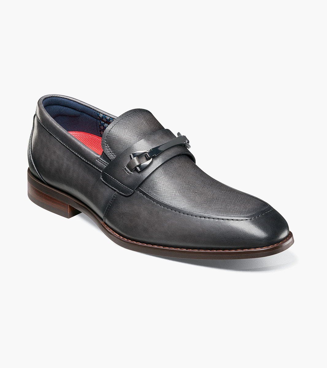 The Stacy Adams Kaylor Moc Toe Bit Slip On features a stylish upper and stacked heel. Highlighted by a stylish metal bit, it also has the comfort of breathable linings and our RedZone cushioned footbed. This slip on style is versatile enough for work, night out, or special event.