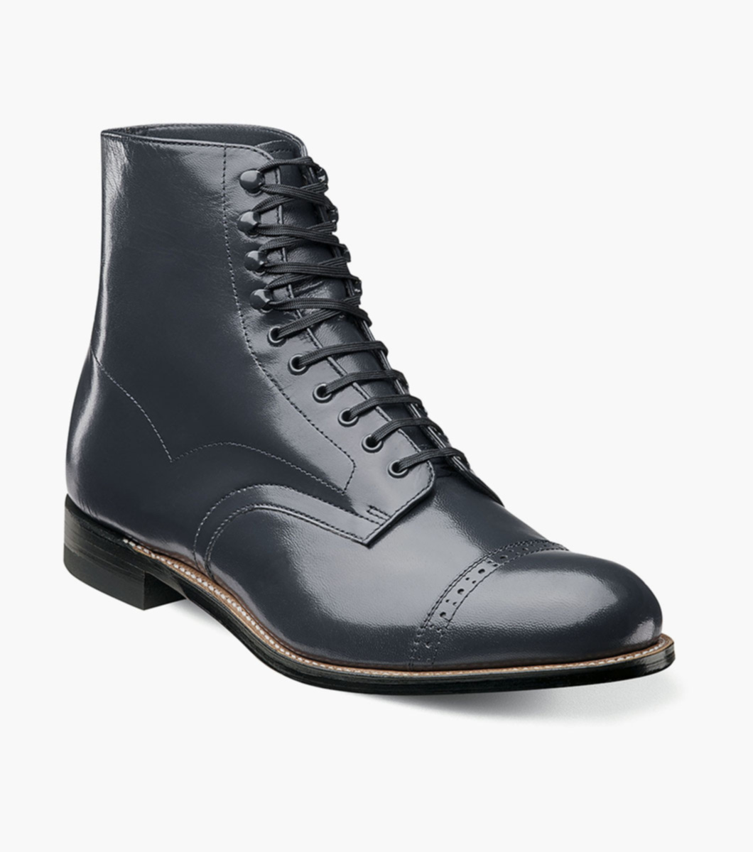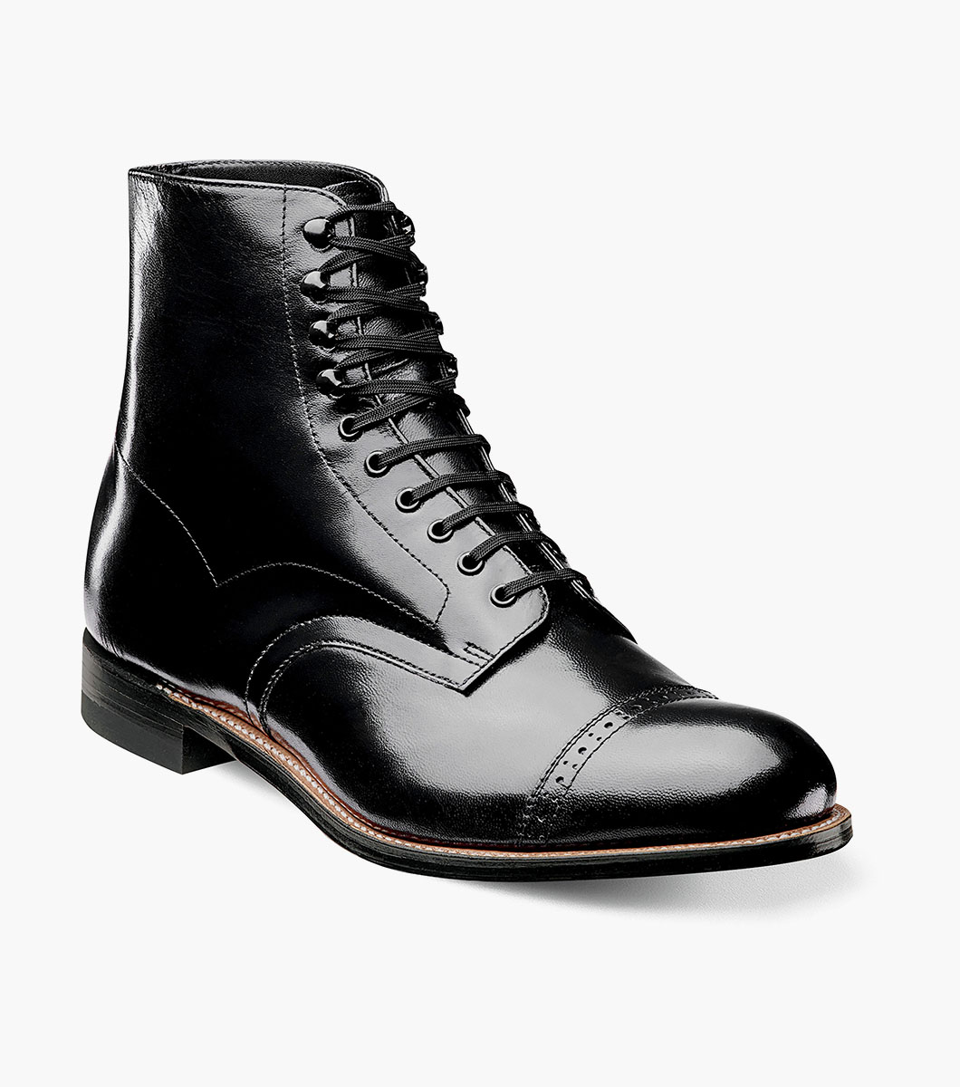 We created the Stacy Adams Madison Cap Toe Boot using genuine Goodyear welted construction and a leather sole with soft kidskin leather for both the upper and the lining. The highest quality construction and materials combine with cutting edge design to create a boot that will never go unnoticed.