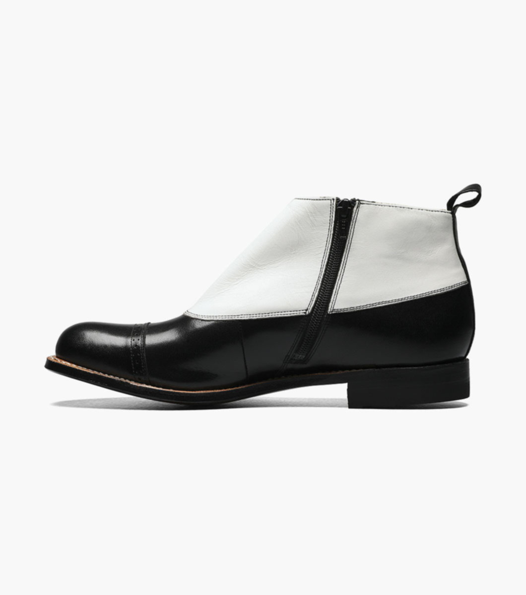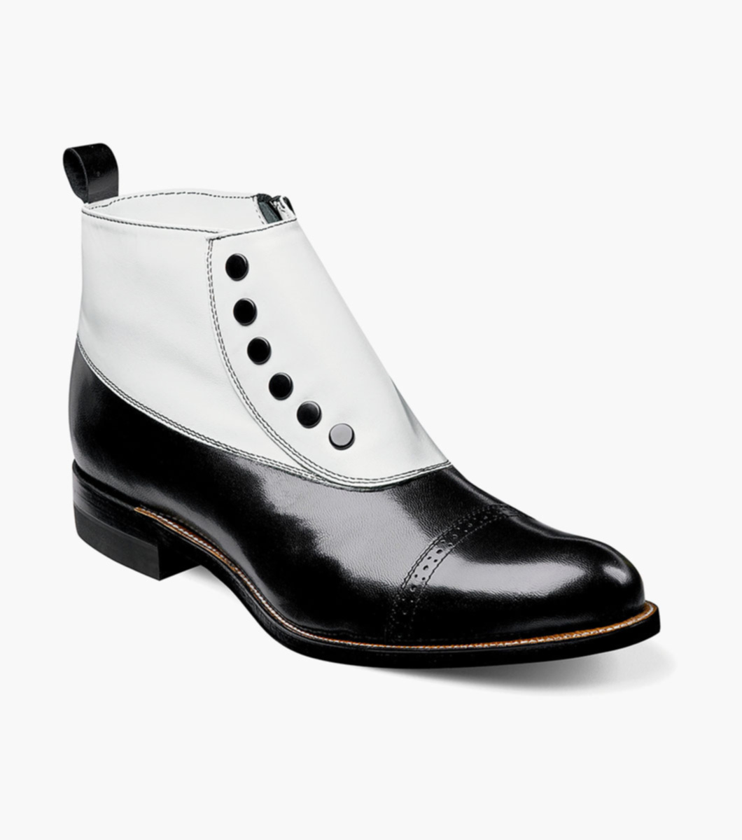 The Stacy Adams Madison Spectator Cap Toe Boot harkens back to an age when style and quality went hand in hand. Featuring a Goodyear welted construction, genuine leather sole, and a soft kidskin leather upper and lining, this two-tone boot with a decorative buttoned spat and side zipper will make your grandfather proud and your son jealous.