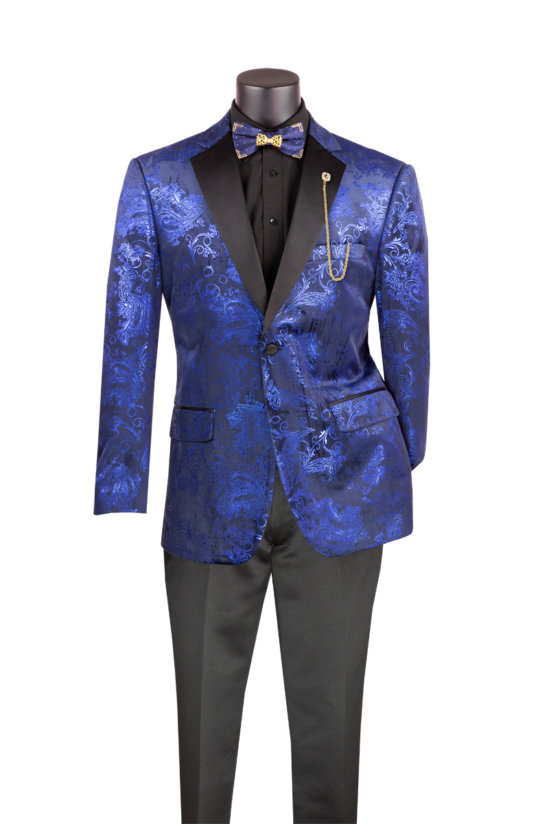 Single breasted 2 buttons, shawl lapel sport coat, Side vents, fancy pattern