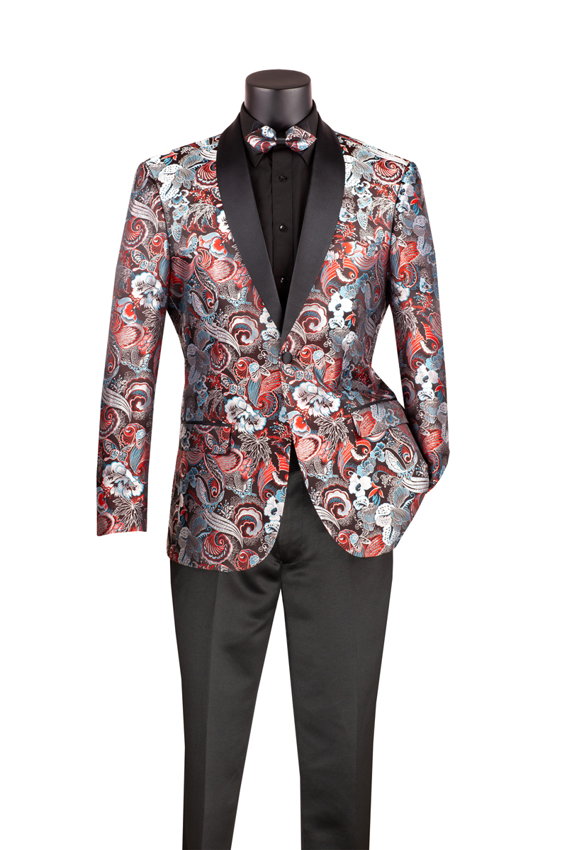 Single breasted 2 buttons, shawl lapel sport coat, Side vents, fancy pattern