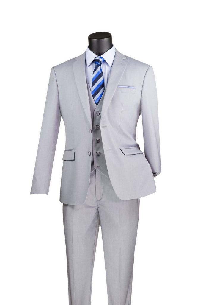 Single breasted 2 buttons, slim fit vested suit