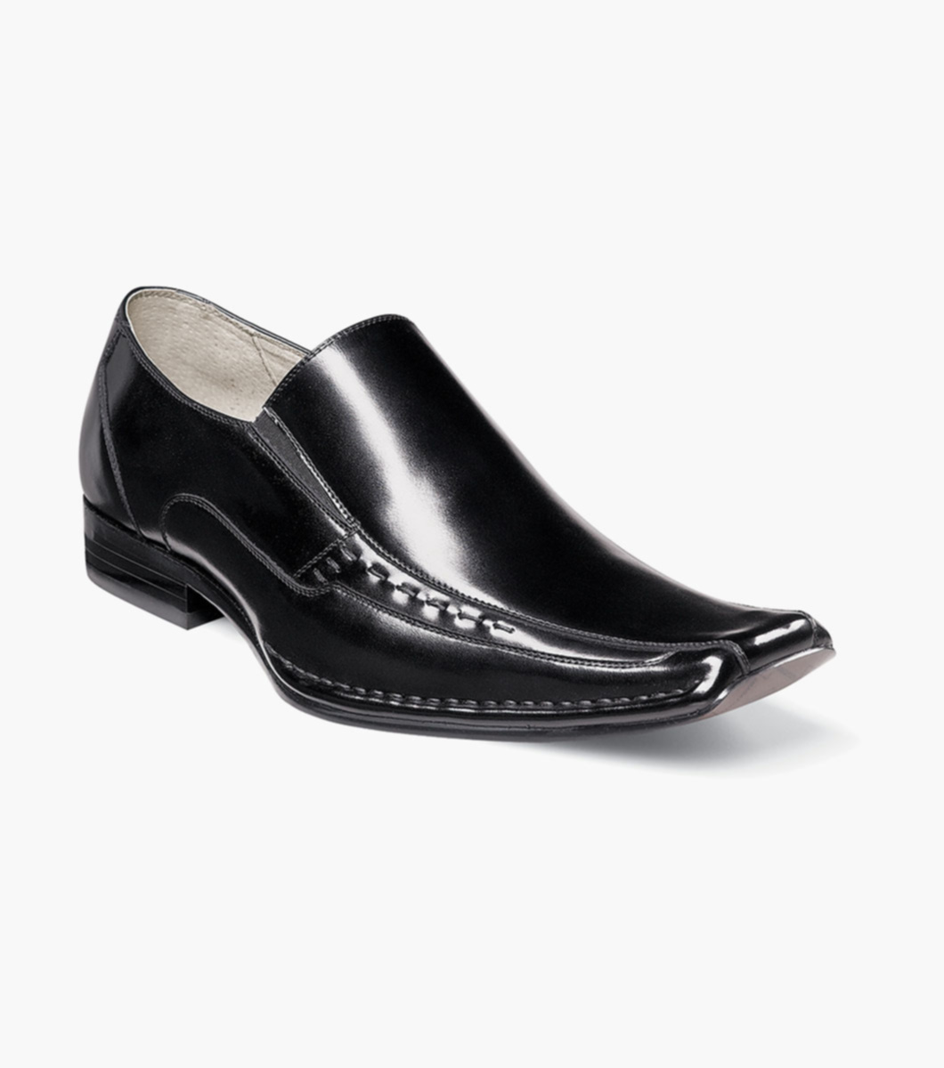Seen in profile, the sleek silhouette and four lines of stitching on the side give it a racy look. Add in its chiseled toe that highlights the its simple, clean design and it all makes the Stacy Adams Cassidy Moc Toe Loafer an understated shoe that will never be overlooked.