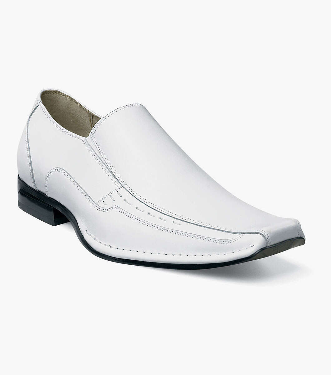 The Stacy Adams Wellington Moc Toe Slip On features a richly burnished leather upper with elegant perfing details and a contrasting sole Inside, our RedZone footbed and microfiber linings add comfort to its modern, versatile style